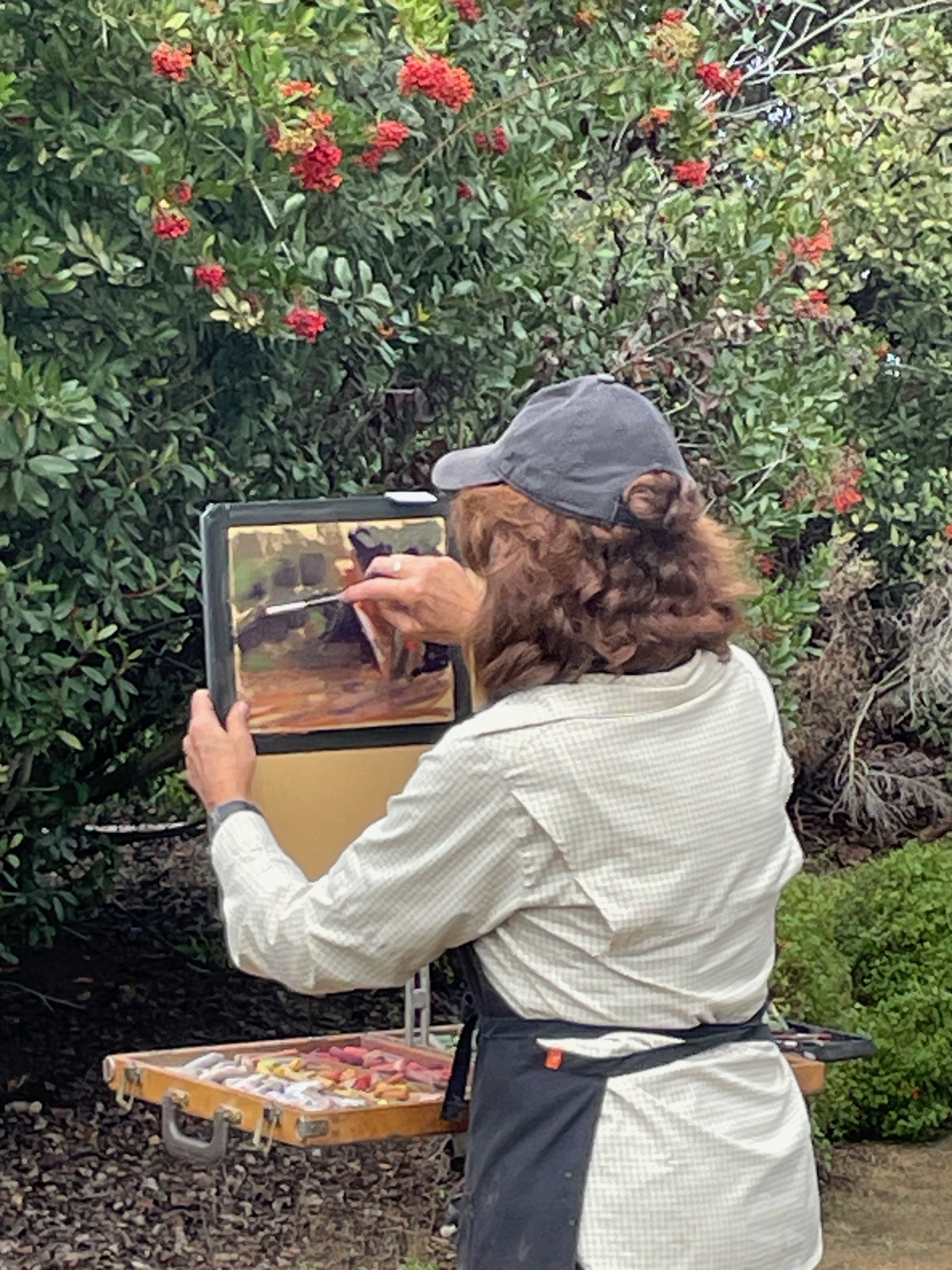 Thank you to Mary Aslin for a fabulous 2-Day Plein Air Pastel Workshop. Mary adapted to the indoor classroom due to the weekend rain, but her teaching and demonstrations were very helpful to everyone. Day 2 provided an afternoon opportunity to get out to paint. We welcomed two new SOCALPAPA Members and as they joined the other 8 participants!